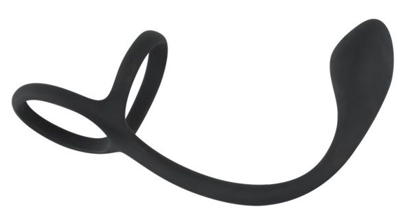Anální kolík 3 v 1 pomůcka určená pro muže. Trojitá stimulace, který přinese slast téměř každému muži. Kroužek kolem penisu a varlat a anální dildo mezi hýžděmi. Kroužky pro pevnější a kvalitnější erekci. Anální kolík pro stimulaci prostaty. Celková délka 22,5 cm. Zástrčka: úplná délka 16 cm, hloubka zasunutí 6 cm, Ø 0,8-2,8 cm. Prstenec na varlata a varlata: Ø 4,1 cm (pružný), tloušťka 5 mm. Silikon s PU povlakem.